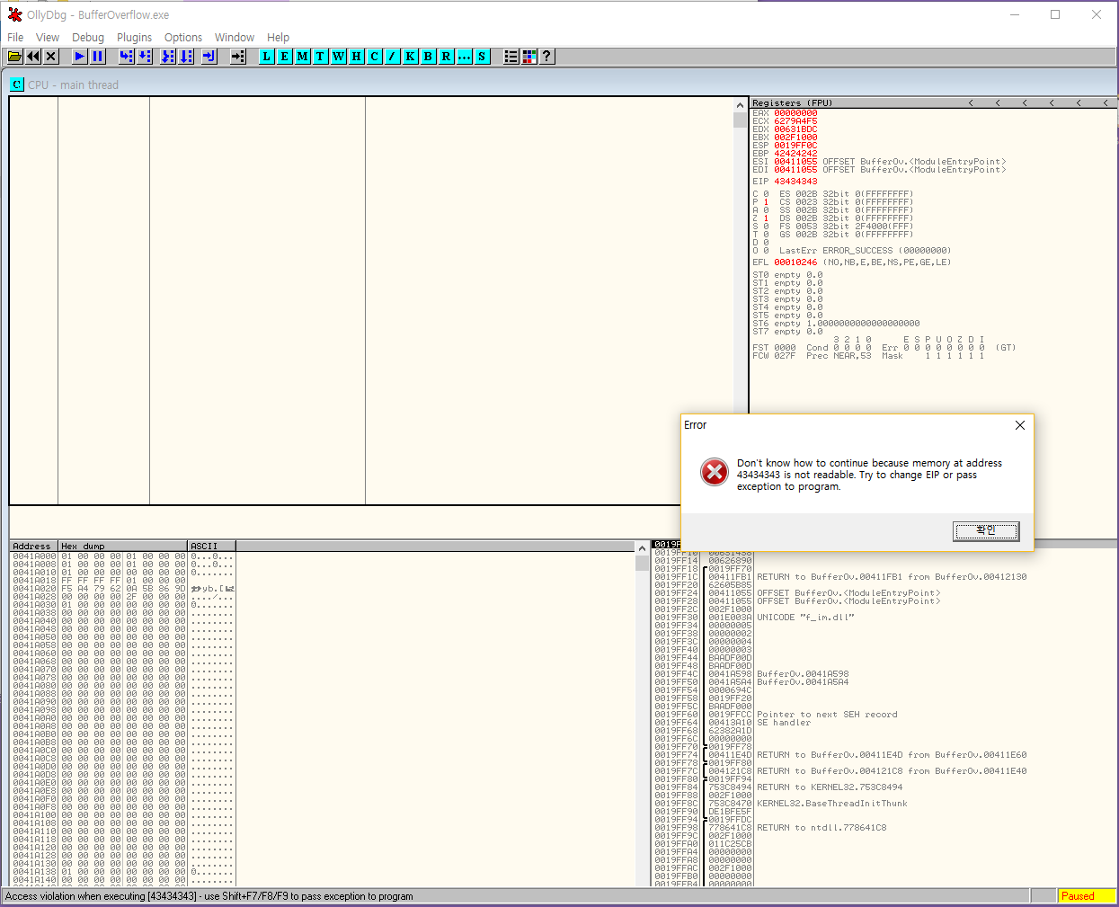 그 후 BOF취약점을 이용해 EIP를 컨트롤하려고 한다.