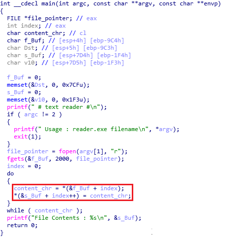 해당 파일의 내용을 특정한 버퍼(f_Buf)에 저장한다.