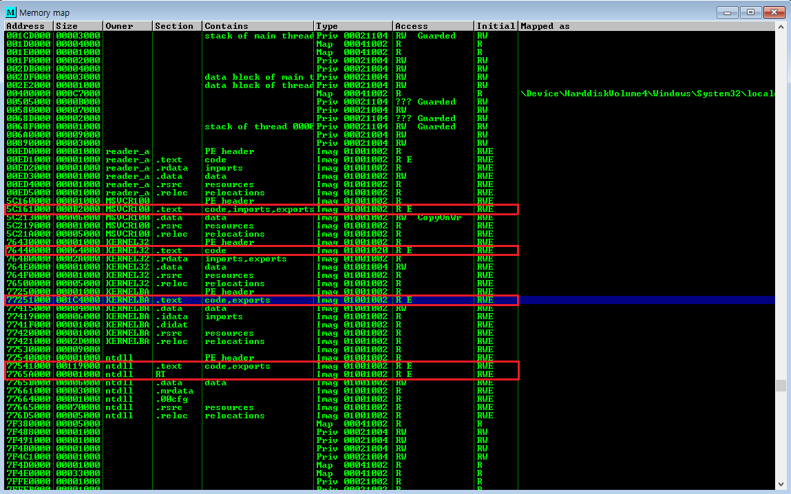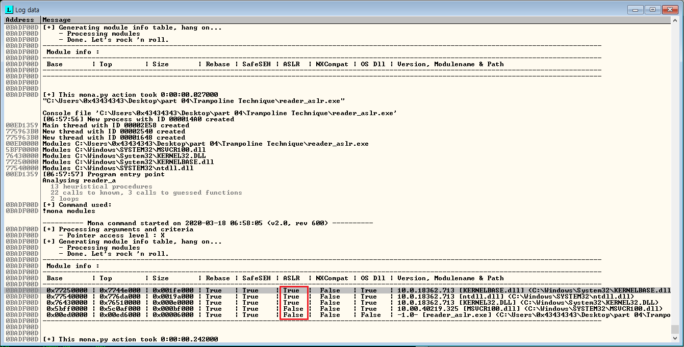 하지만 모듈 정보를 살펴보면 ASLR이 적용되지 않은 MSVCR100.dll이 로딩되는 것을 확인할 수 있다.