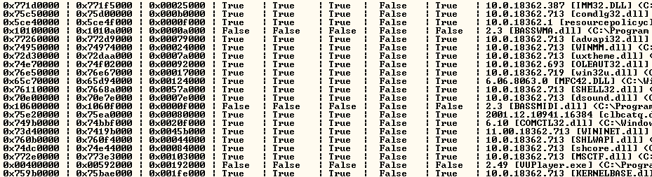 다음과 같이 몇개의 모듈은 어떠한 보호기법도 걸려있지 않은 것으로 확인된다.