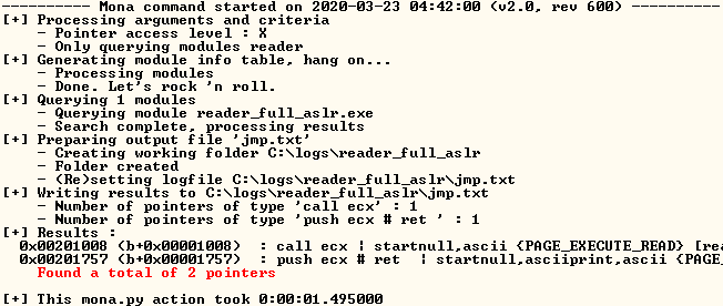 mona를 이용하여 찾아본 결과 ECX를 EIP로 control 가능한 가젯이 확인 되었다.